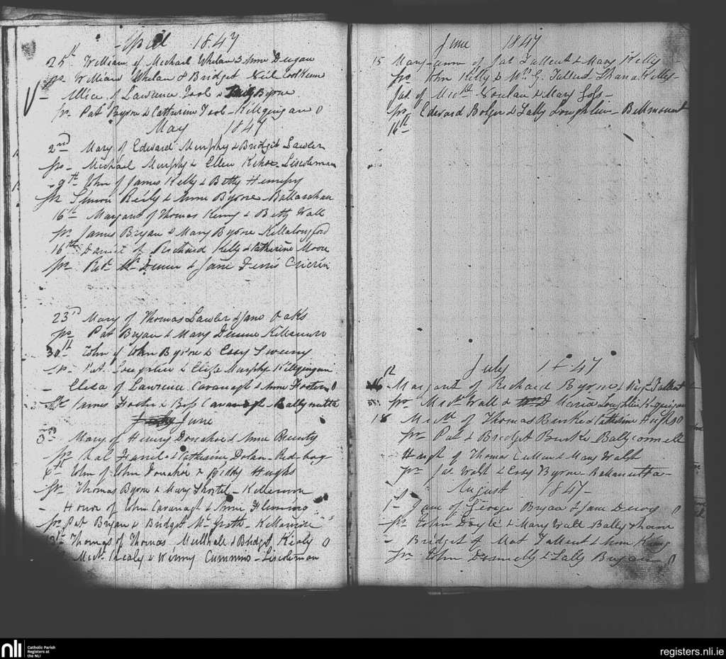 Clonmore; County of Carlow, Wicklow; Diocese of Kildare and Leighlin. Baptisms, Apr. 1847 to Aug. 1847