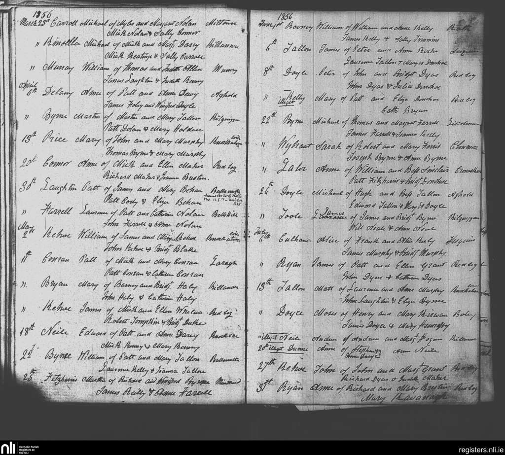 Clonmore; County of Carlow, Wicklow; Diocese of Kildare and Leighlin. Baptisms, Mar. 1856 to July 1856