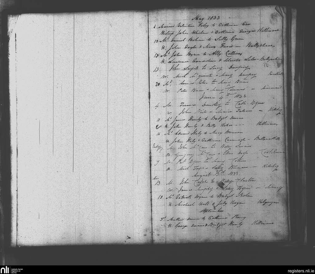 Clonmore; County of Carlow, Wicklow; Diocese of Kildare and Leighlin. Marriages, May 1833 to Sep. 1833