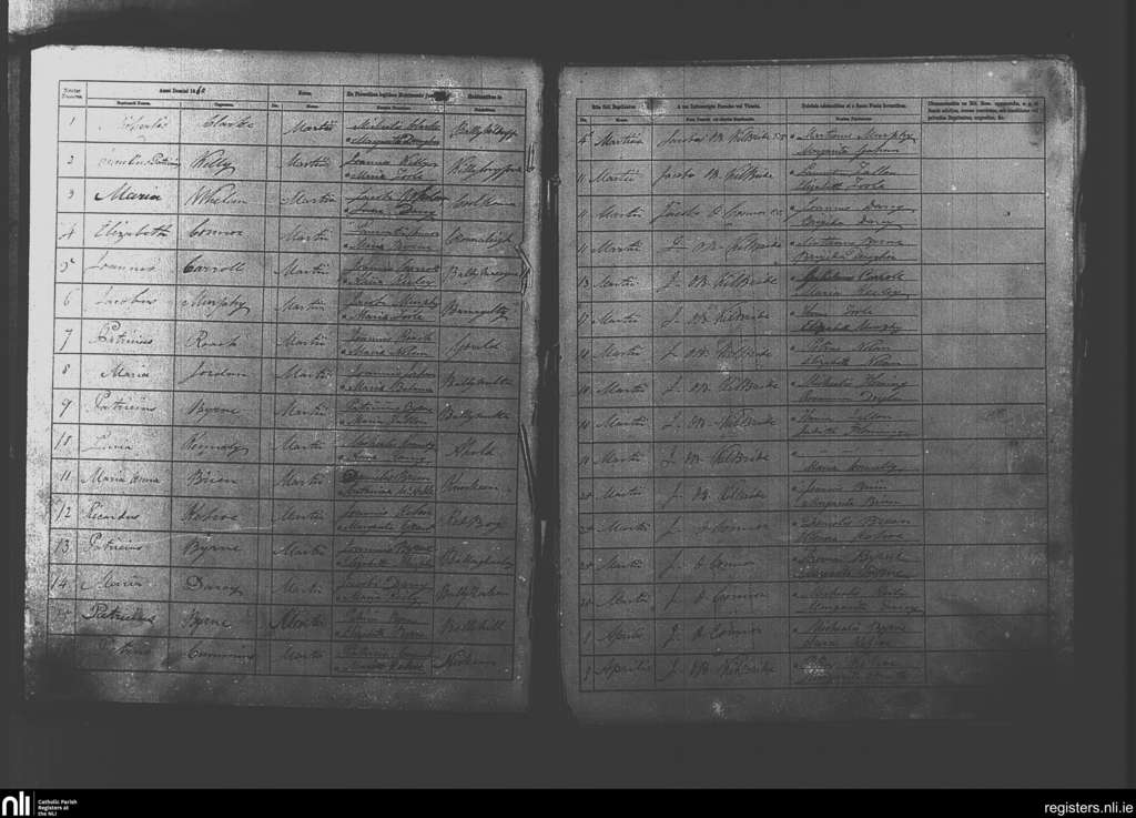 Clonmore; County of Carlow, Wicklow; Diocese of Kildare and Leighlin. Baptisms, Mar. 1860 to Apr. 1860