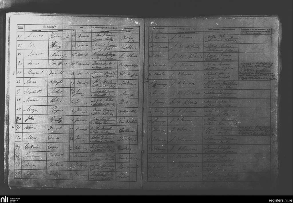 Clonmore; County of Carlow, Wicklow; Diocese of Kildare and Leighlin. Baptisms, Dec. 1860 to Feb. 1861