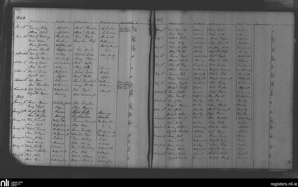 Clonmore; County of Carlow, Wicklow; Diocese of Kildare and Leighlin. Marriages, June 1868 to Nov. 1869