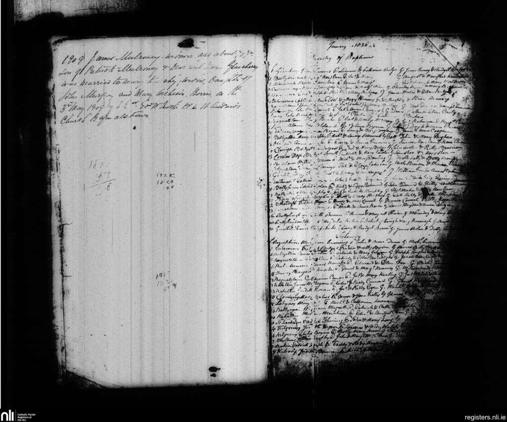Dunleckney; County of Carlow; Diocese of Kildare and Leighlin. Baptisms, Jan. 1820 to May 1909