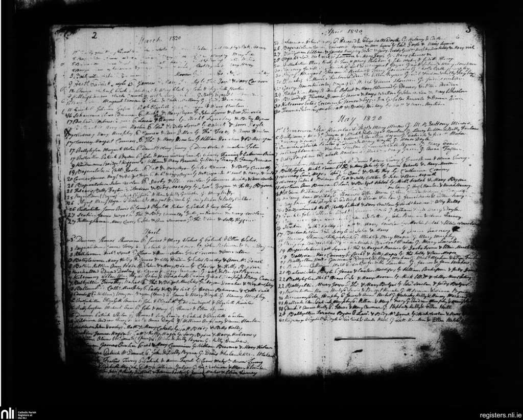 Dunleckney; County of Carlow; Diocese of Kildare and Leighlin. Baptisms, Mar. 1820 to May 1820