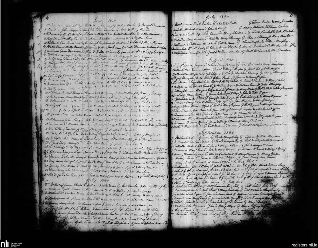 Dunleckney; County of Carlow; Diocese of Kildare and Leighlin. Baptisms, June 1820 to Sep. 1820