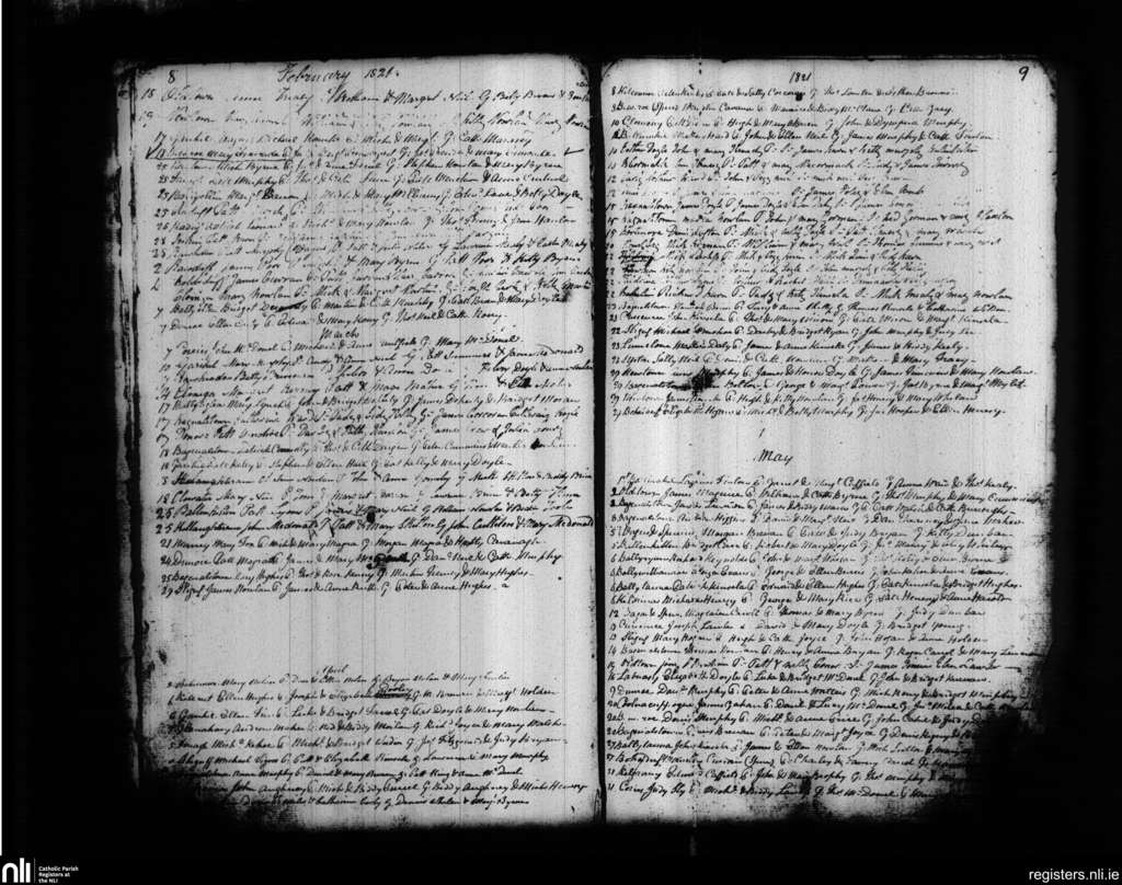 Dunleckney; County of Carlow; Diocese of Kildare and Leighlin. Baptisms, Feb. 1821 to May 1821