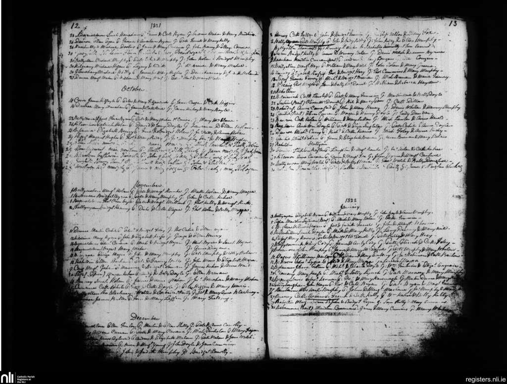 Dunleckney; County of Carlow; Diocese of Kildare and Leighlin. Baptisms, Sep. 1821 to Jan. 1822