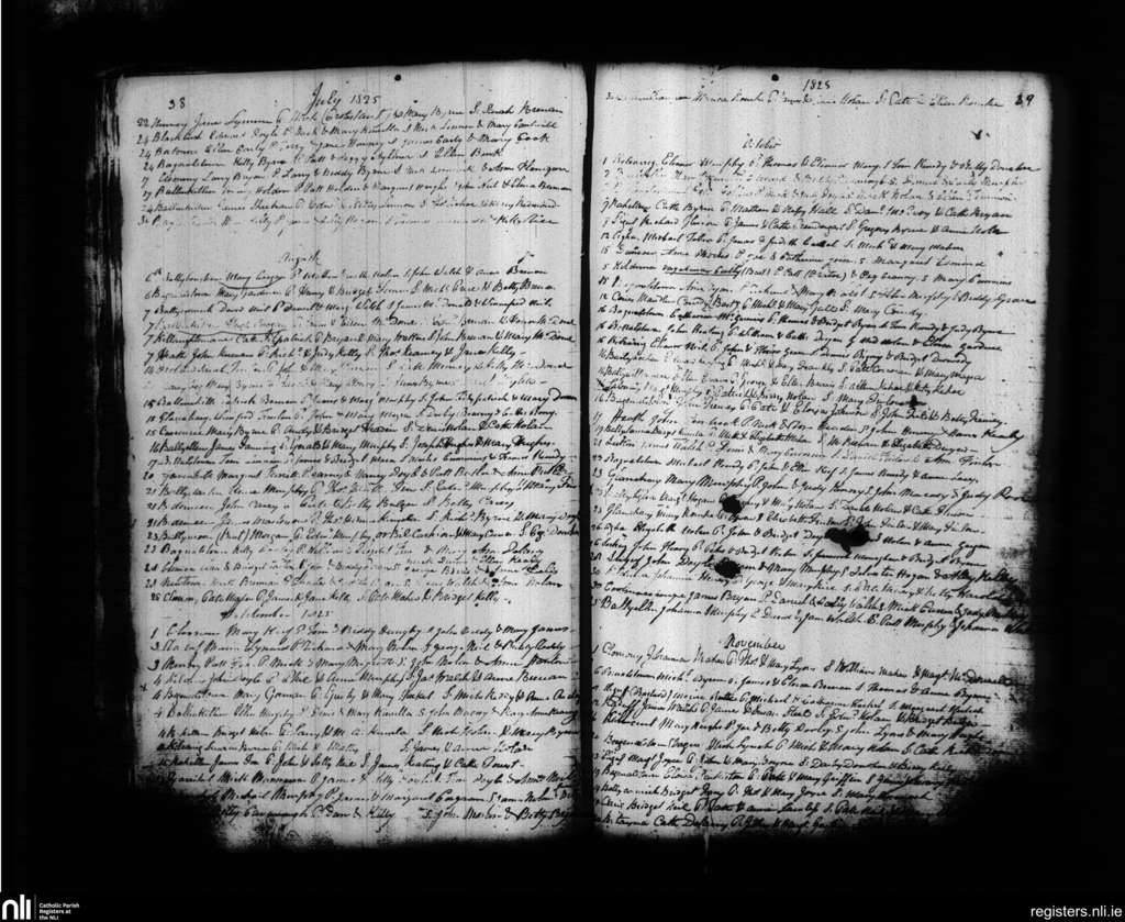 Dunleckney; County of Carlow; Diocese of Kildare and Leighlin. Baptisms, July 1825 to Nov. 1825