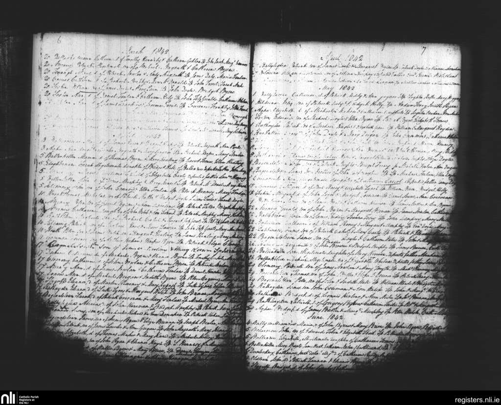 Dunleckney; County of Carlow; Diocese of Kildare and Leighlin. Baptisms, Mar. 1842 to June 1842