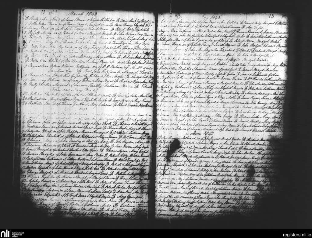 Dunleckney; County of Carlow; Diocese of Kildare and Leighlin. Baptisms, Mar. 1843 to June 1843