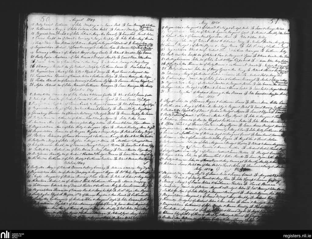 Dunleckney; County of Carlow; Diocese of Kildare and Leighlin. Baptisms, Aug. 1849 to July 1850