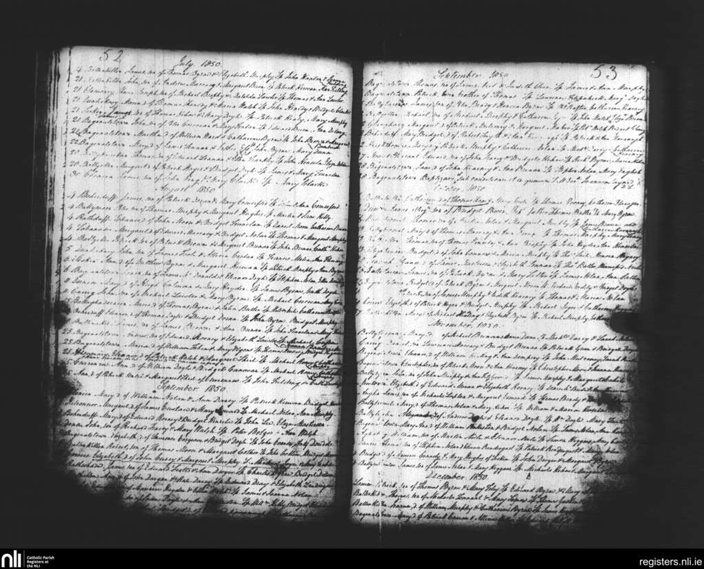 Dunleckney; County of Carlow; Diocese of Kildare and Leighlin. Baptisms, July 1850 to Dec. 1850