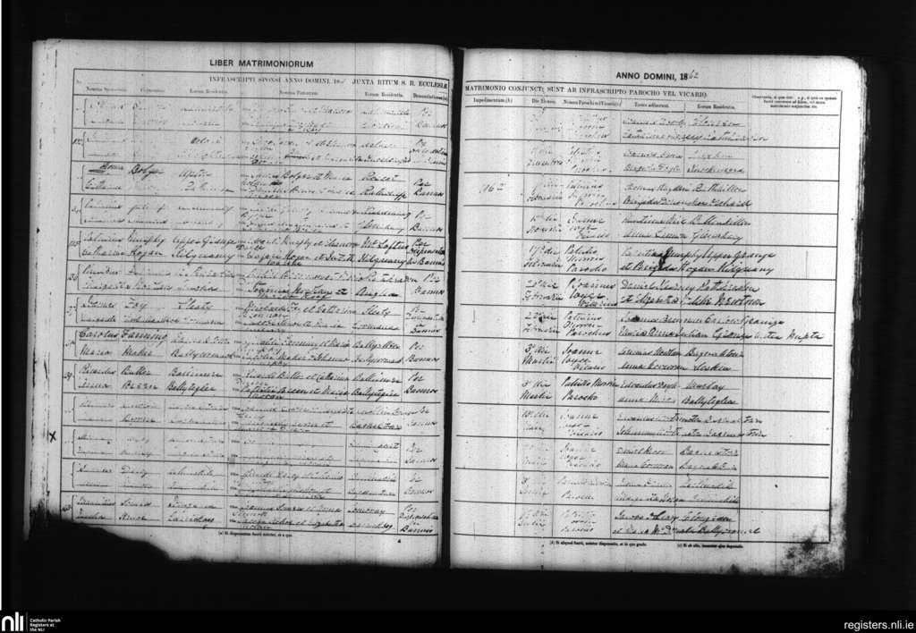 Dunleckney; County of Carlow; Diocese of Kildare and Leighlin. Marriages, Dec. 1861 to July 1862