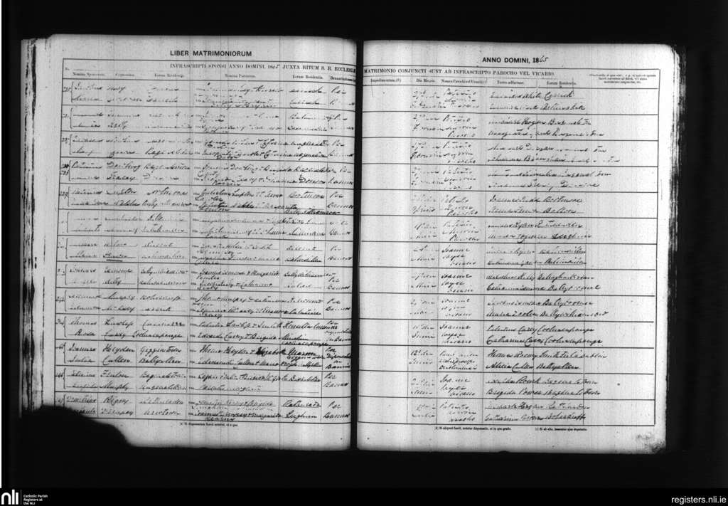 Dunleckney; County of Carlow; Diocese of Kildare and Leighlin. Marriages, Feb. 1865 to July 1865