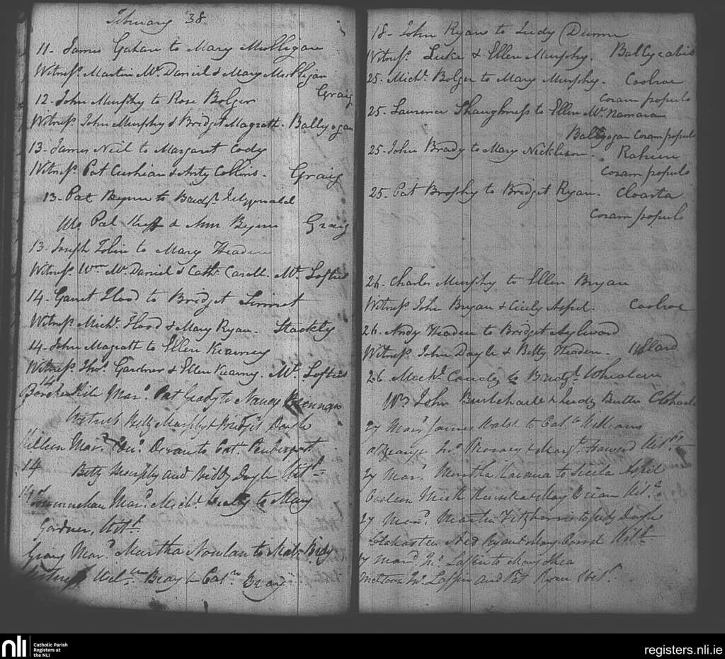 Graignamanagh; County of Carlow, Kilkenny; Diocese of Kildare and Leighlin. Marriages, Feb. 1838