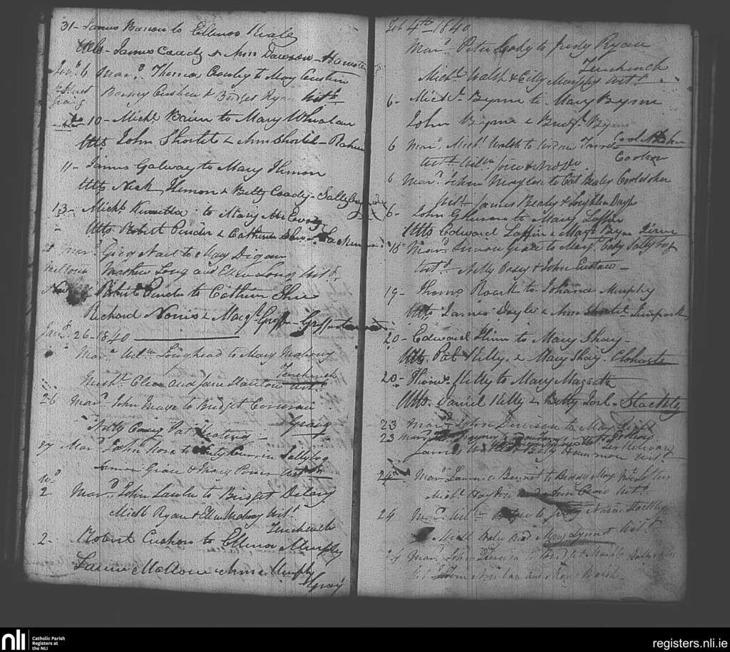 Graignamanagh; County of Carlow, Kilkenny; Diocese of Kildare and Leighlin. Marriages, Oct. 1839 to Feb. 1840