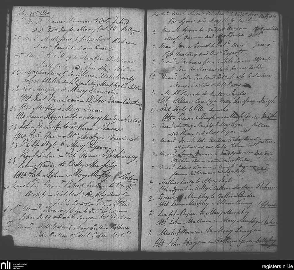 Graignamanagh; County of Carlow, Kilkenny; Diocese of Kildare and Leighlin. Marriages, Feb. 1840 to Mar. 1840