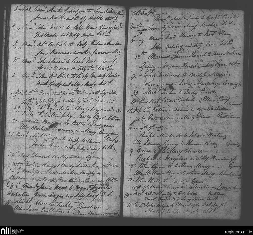 Graignamanagh; County of Carlow, Kilkenny; Diocese of Kildare and Leighlin. Marriages, Jan. 1842 to Jan. 1843