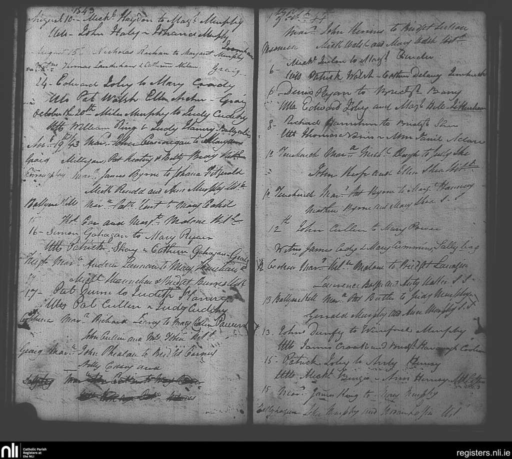 Graignamanagh; County of Carlow, Kilkenny; Diocese of Kildare and Leighlin. Marriages, Aug. 1843 to Feb. 1844