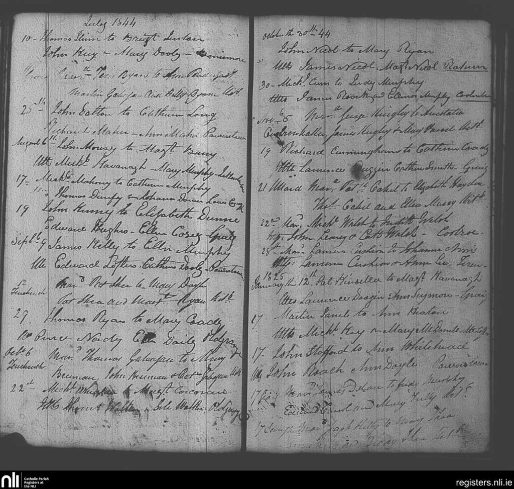 Graignamanagh; County of Carlow, Kilkenny; Diocese of Kildare and Leighlin. Marriages, July 1844 to Jan. 1845