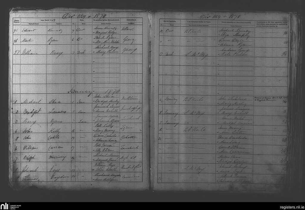 Graignamanagh; County of Carlow, Kilkenny; Diocese of Kildare and Leighlin. Baptisms, Dec. 1869 to Jan. 1870