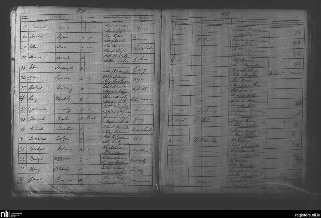 Graignamanagh; County of Carlow, Kilkenny; Diocese of Kildare and Leighlin. Baptisms, Feb. 1871 to Mar. 1871