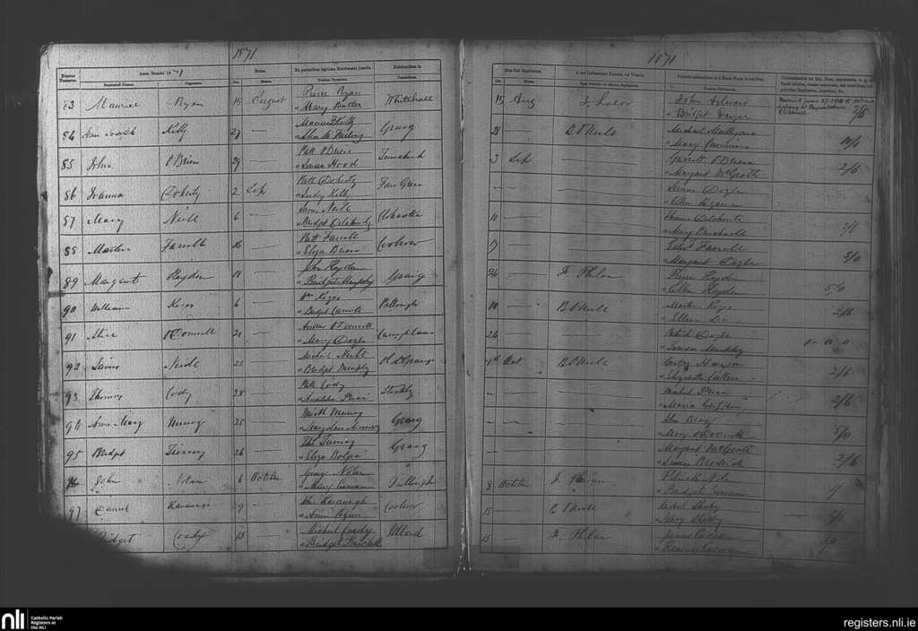Graignamanagh; County of Carlow, Kilkenny; Diocese of Kildare and Leighlin. Baptisms, Aug. 1871 to Oct. 1871