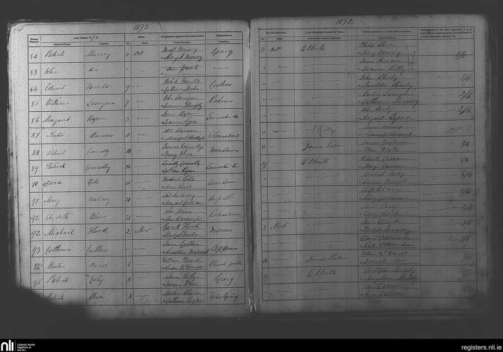 Graignamanagh; County of Carlow, Kilkenny; Diocese of Kildare and Leighlin. Baptisms, Oct. 1872 to Nov. 1872