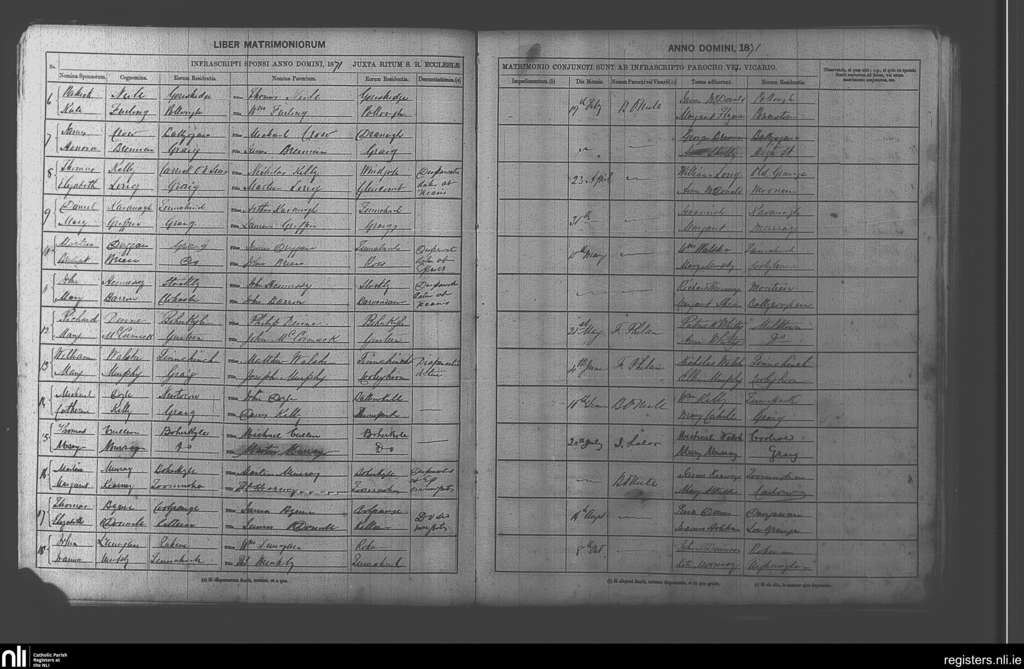Graignamanagh; County of Carlow, Kilkenny; Diocese of Kildare and Leighlin. Marriages, Feb. 1871 to Oct. 1871