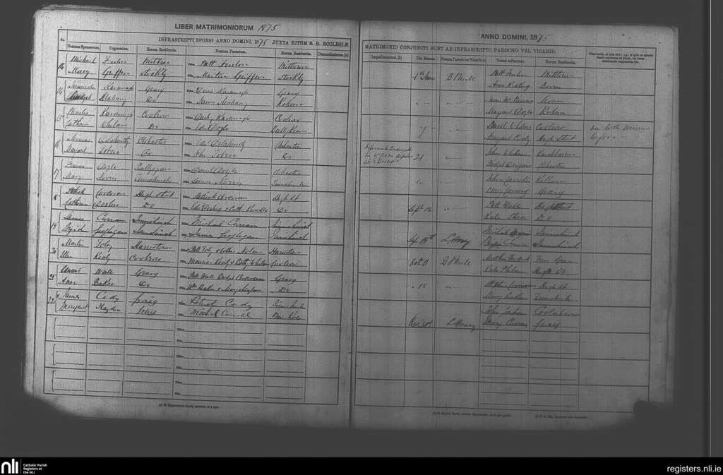 Graignamanagh; County of Carlow, Kilkenny; Diocese of Kildare and Leighlin. Marriages, June 1875 to Oct. 1875