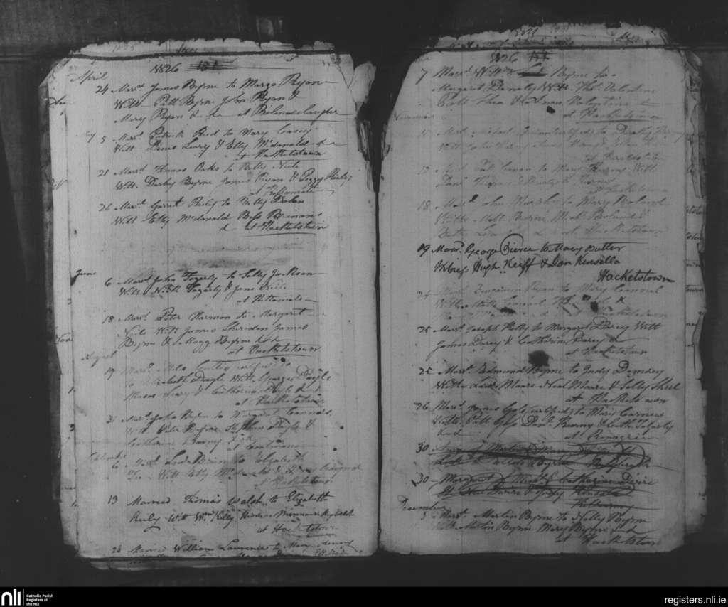 Hacketstown; County of Carlow, Wicklow; Diocese of Kildare and Leighlin. Marriages, Apr. 1826 to Dec. 1826