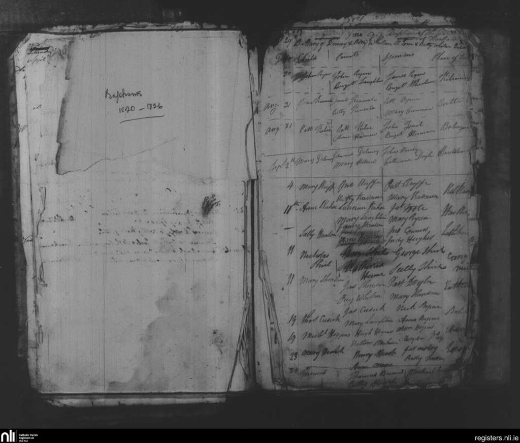 Hacketstown; County of Carlow, Wicklow; Diocese of Kildare and Leighlin. Baptisms, Aug. 1820 to Sep. 1820