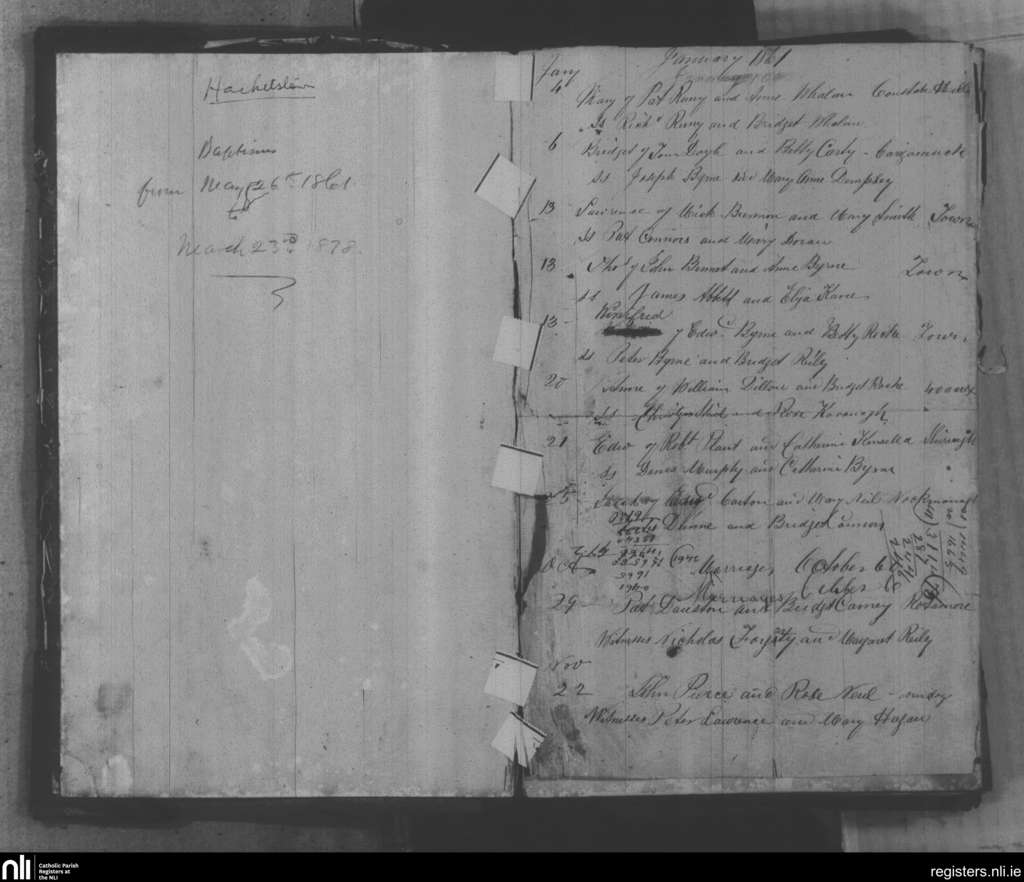 Hacketstown; County of Carlow, Wicklow; Diocese of Kildare and Leighlin. Baptisms, Jan. 1861 to Nov. 1861