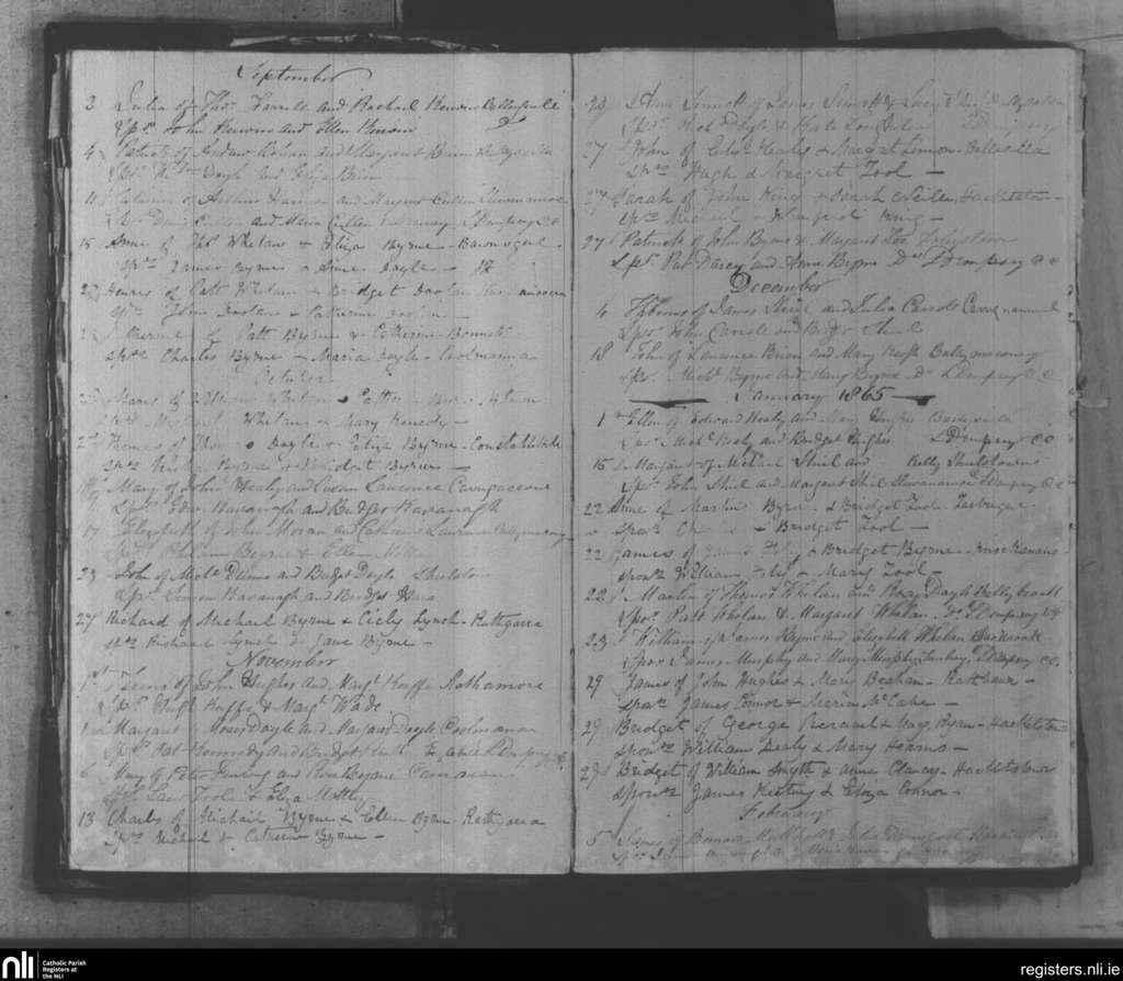 Hacketstown; County of Carlow, Wicklow; Diocese of Kildare and Leighlin. Baptisms, Sep. 1864 to Feb. 1865