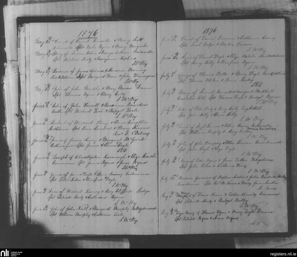 Hacketstown; County of Carlow, Wicklow; Diocese of Kildare and Leighlin. Baptisms, May 1876 to Aug. 1876