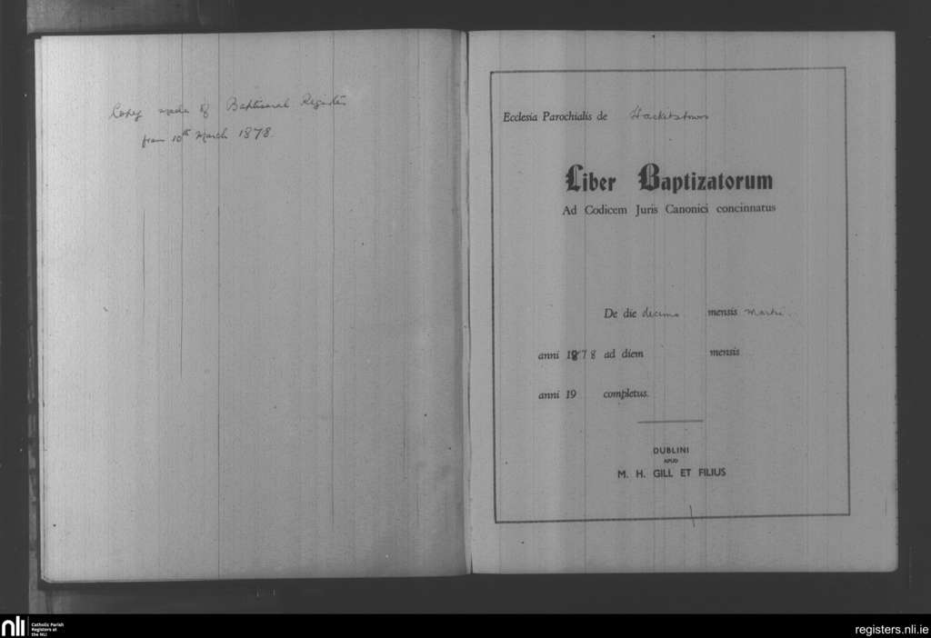 Hacketstown; County of Carlow, Wicklow; Diocese of Kildare and Leighlin. Baptisms
