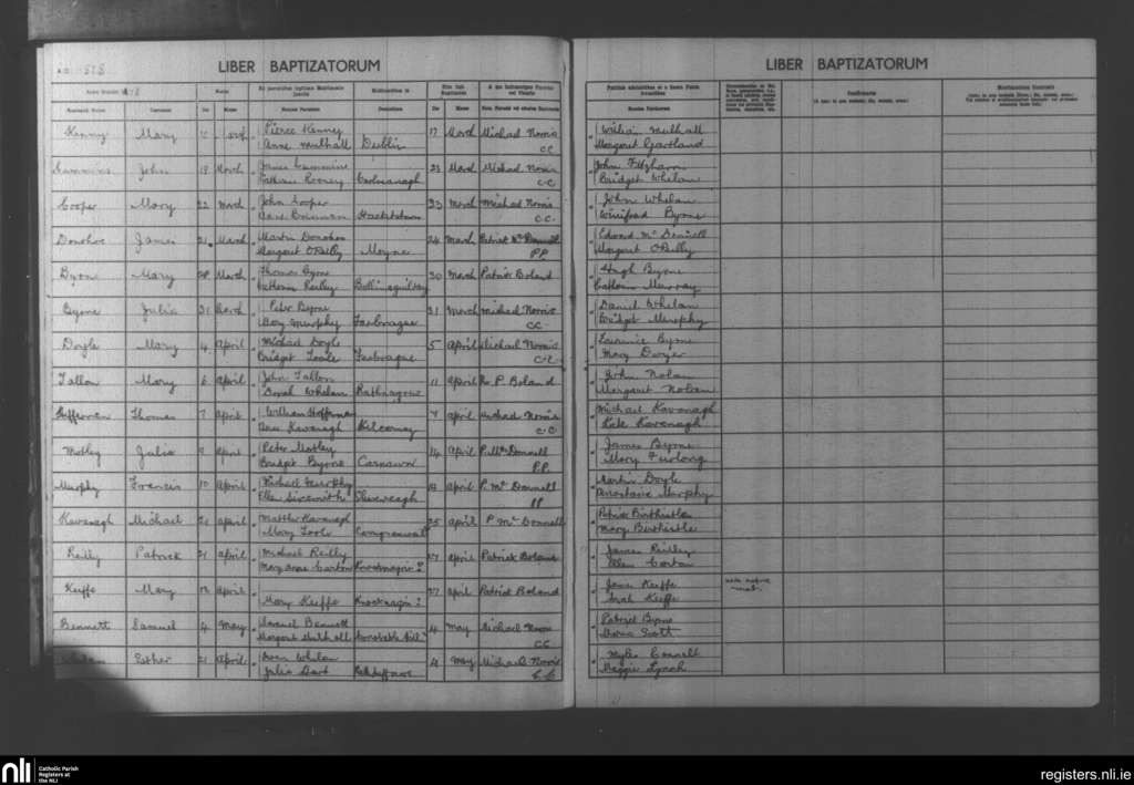 Hacketstown; County of Carlow, Wicklow; Diocese of Kildare and Leighlin. Baptisms, Mar. 1878 to May 1878