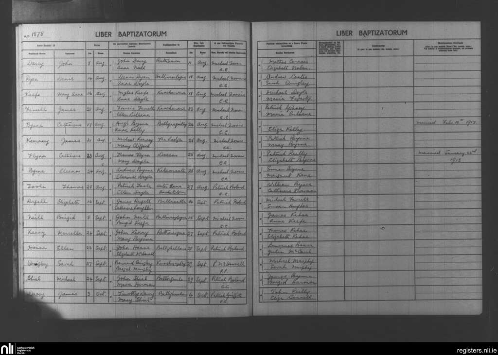 Hacketstown; County of Carlow, Wicklow; Diocese of Kildare and Leighlin. Baptisms, Aug. 1878 to Oct. 1878