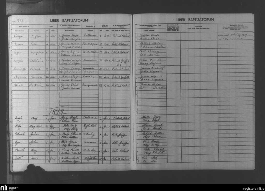 Hacketstown; County of Carlow, Wicklow; Diocese of Kildare and Leighlin. Baptisms, Dec. 1878 to Jan. 1879