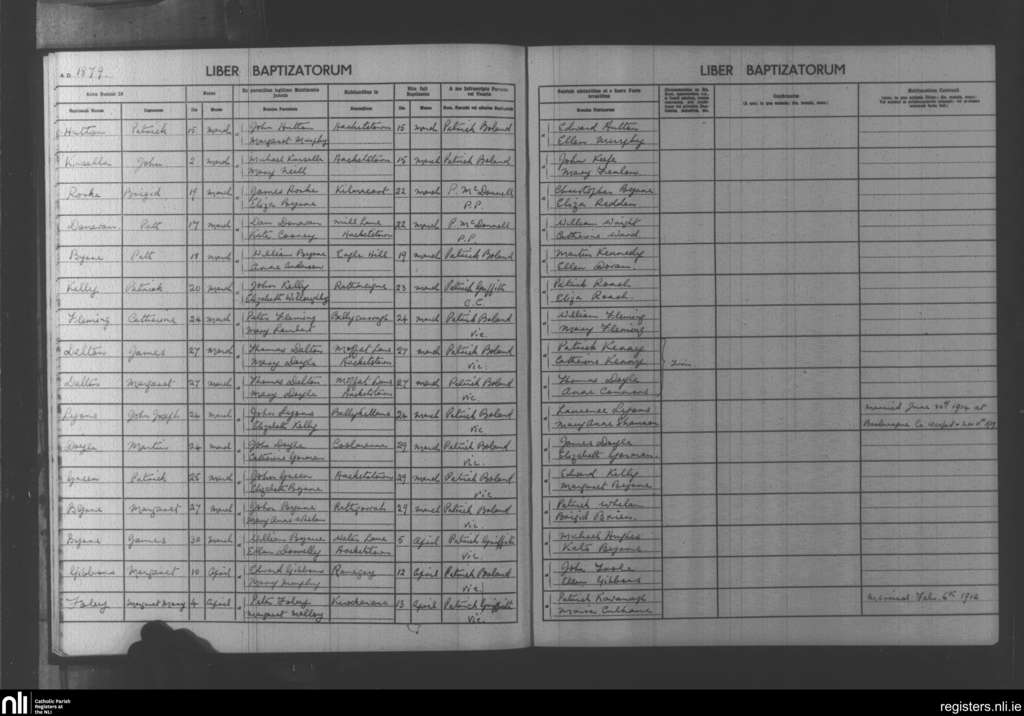 Hacketstown; County of Carlow, Wicklow; Diocese of Kildare and Leighlin. Baptisms, Mar. 1879 to Apr. 1879