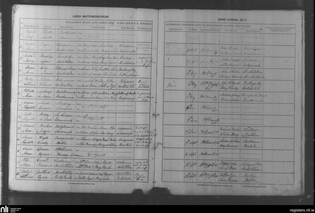 Hacketstown; County of Carlow, Wicklow; Diocese of Kildare and Leighlin. Marriages, Feb. 1879 to Sep. 1879
