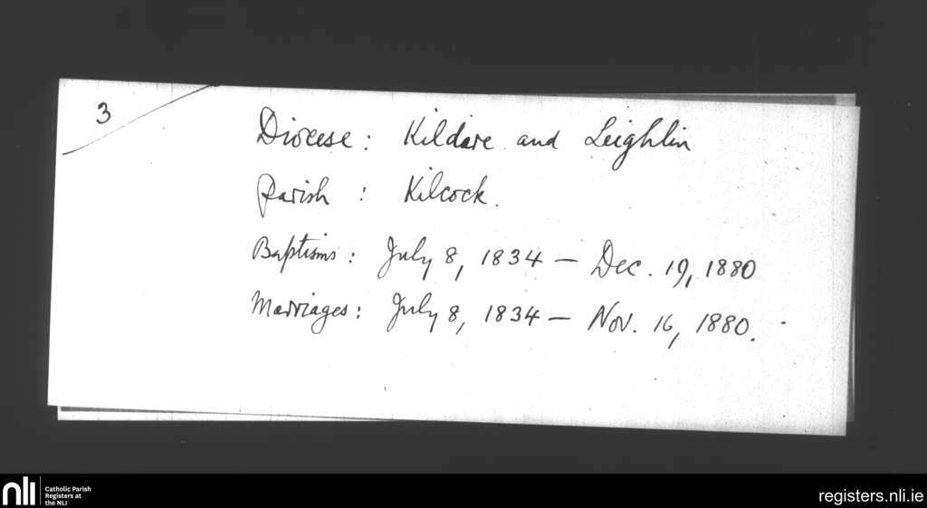 Kilcock; County of Kildare; Diocese of Kildare and Leighlin. Baptisms, Marriages