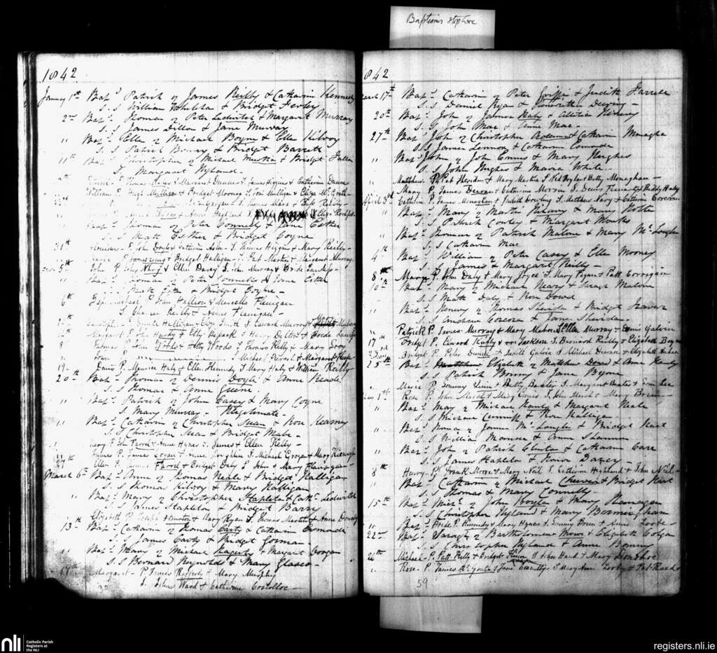 Kilcock; County of Kildare; Diocese of Kildare and Leighlin. Baptisms, Jan. 1842 to May 1842