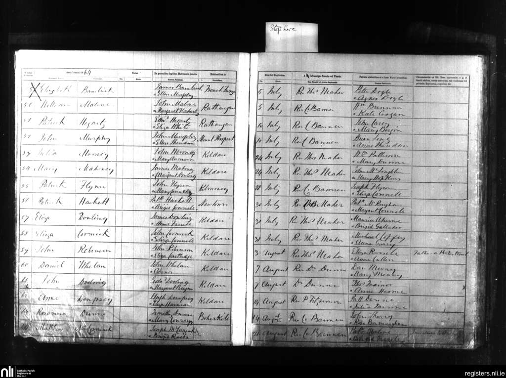 Kildare and Rathangan; County of Kildare; Diocese of Kildare and Leighlin. Baptisms, July 1864 to Aug. 1864
