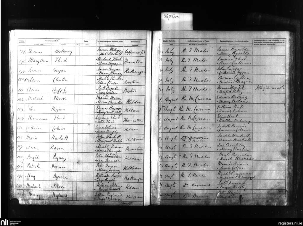 Kildare and Rathangan; County of Kildare; Diocese of Kildare and Leighlin. Baptisms, July 1865 to Aug. 1865