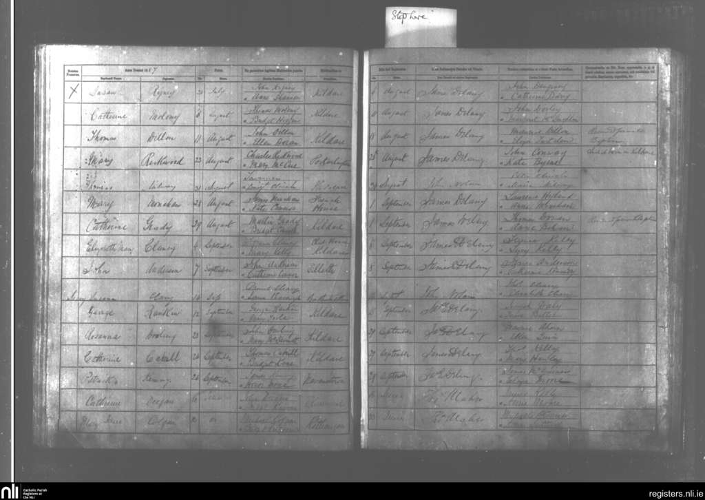 Kildare and Rathangan; County of Kildare; Diocese of Kildare and Leighlin. Baptisms, June 1867 to Sep. 1867