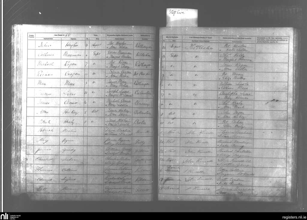 Kildare and Rathangan; County of Kildare; Diocese of Kildare and Leighlin. Baptisms, Aug. 1868 to Dec. 1868