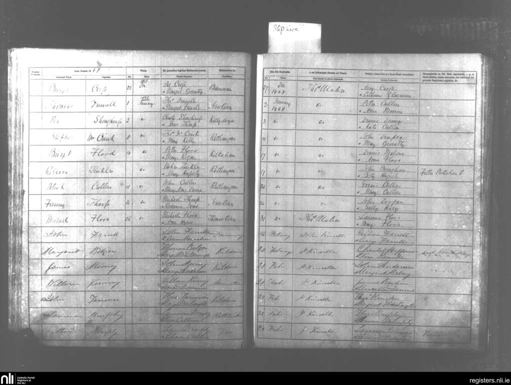 Kildare and Rathangan; County of Kildare; Diocese of Kildare and Leighlin. Baptisms, Dec. 1868 to Feb. 1869