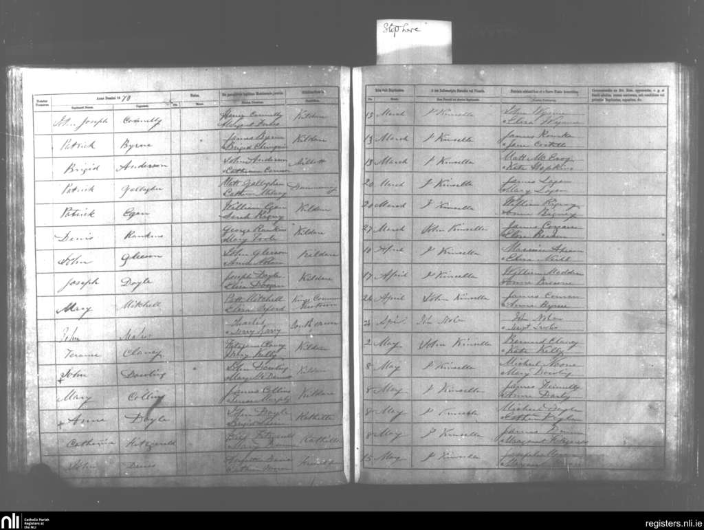 Kildare and Rathangan; County of Kildare; Diocese of Kildare and Leighlin. Baptisms, Mar. 1870 to May 1870