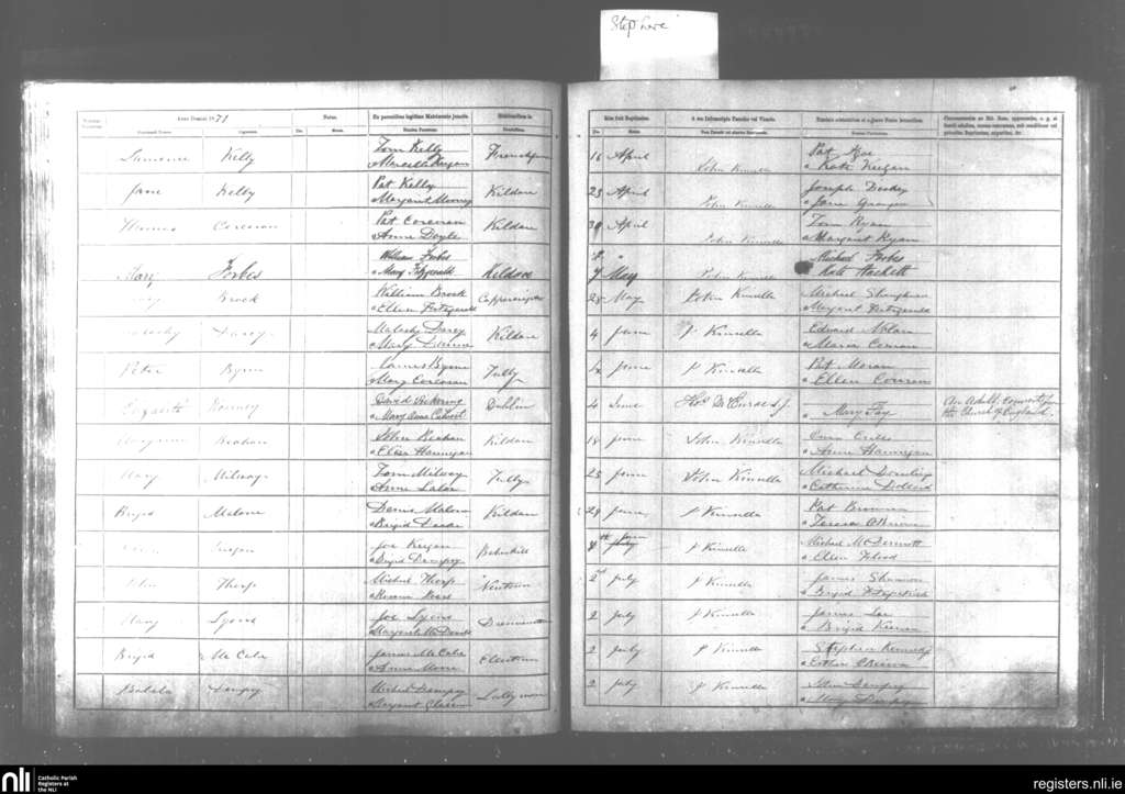 Kildare and Rathangan; County of Kildare; Diocese of Kildare and Leighlin. Baptisms, Apr. 1871 to July 1871